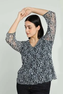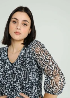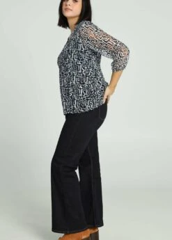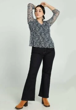 Avec Dentelle Ă€ Motif Graphique – Blusa – Navy Ecru