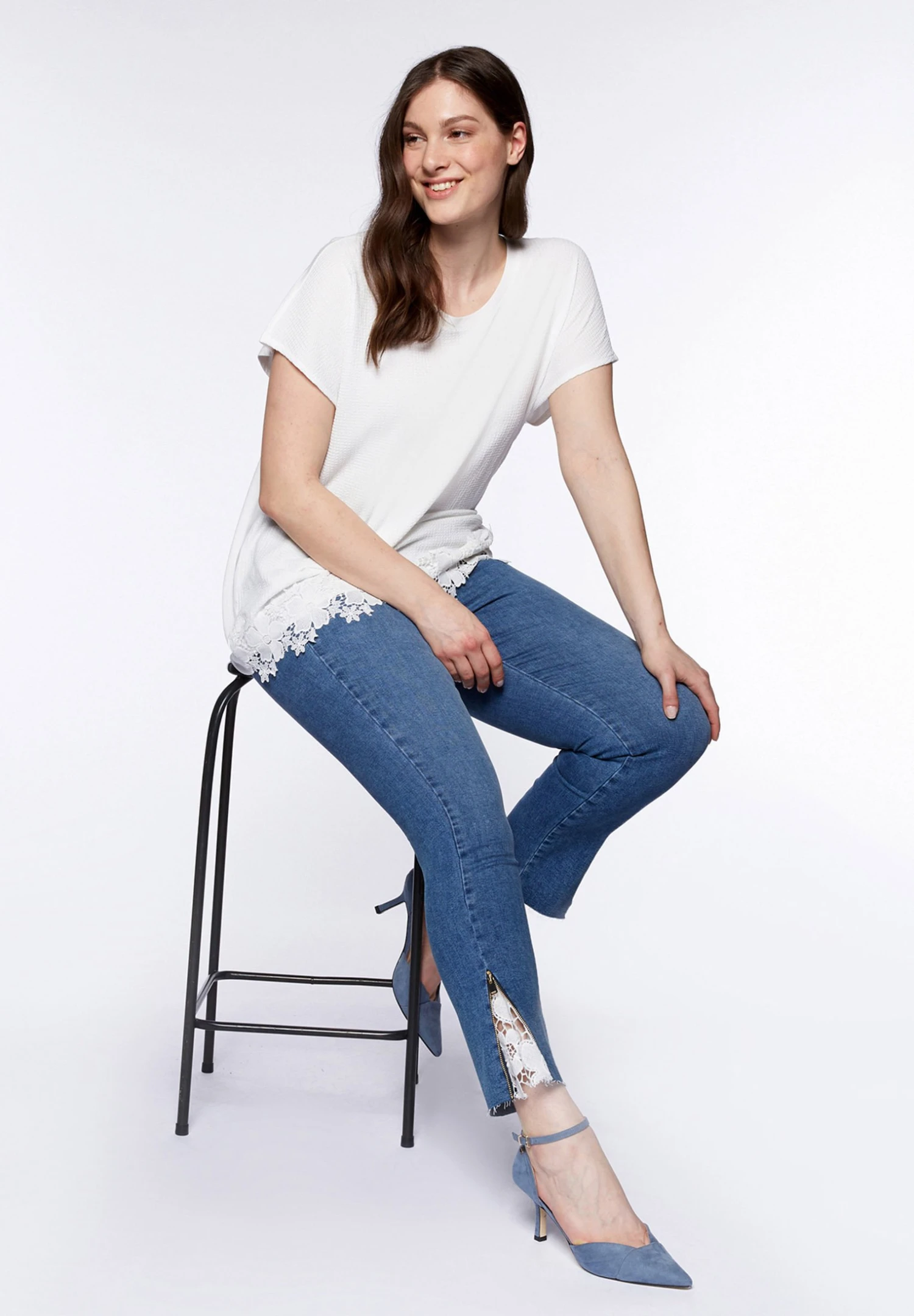 Con Inserto In Pizzo – Jeggings – Blu