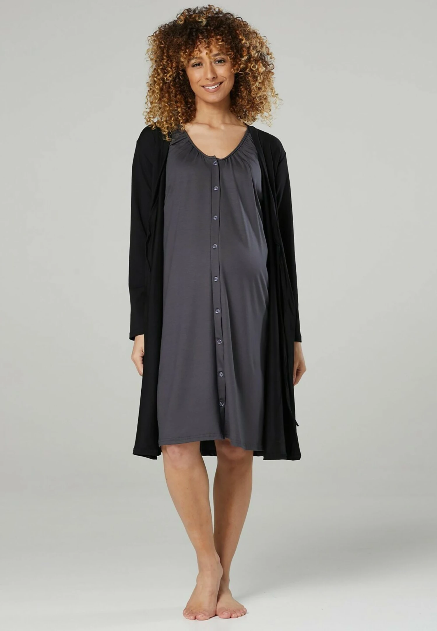 Happy Mama Maternity Hospital Set – Camisón – Graphite & Black